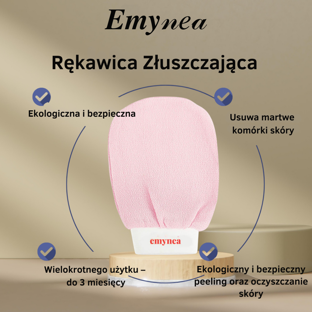 Regularny peeling z rękawicą Emynea zmniejsza widoczność blizn i rozstępów.